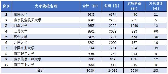 江苏省有效专利量前十大专院校