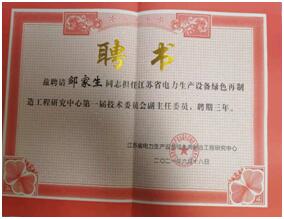 会上苏州市发改委高新技术处柳绪宁处长宣读了江苏省发改委关于成立“江苏省电力生产设备绿色再制造工程研究中心”同意建设文件,成立了由24位专家组成的第一届技术委员会, 焊接分会理事长、江苏科技大学材料学院邹家生教授担任副主任委员。