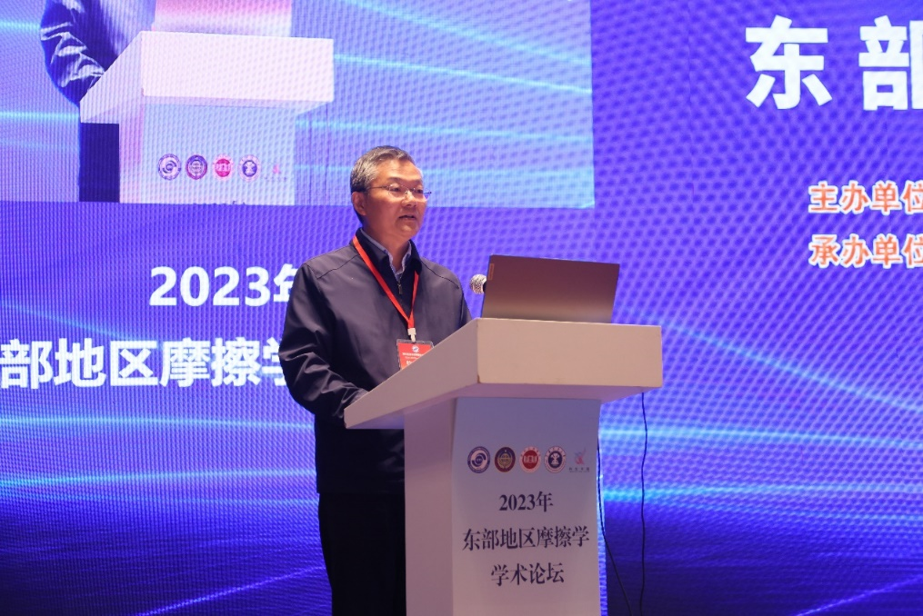 丁建宁校长回顾了东部地区摩擦学学术论坛的发起初衷和发展历程。他指出,摩擦学是一门涉及材料、机械、数学、物理学、化学、力学等的多交叉综合性学科,被广泛应用于矿山、工程、化工机械及汽车制造等众多领域,是国家实现双碳战略目标的重要支撑技术。摩擦学同仁要面向摩擦学工业应用主战场,聚焦摩擦学科学与技术研究热点和难点,共同为新形势下摩擦学学科创新发展做出新的贡献。