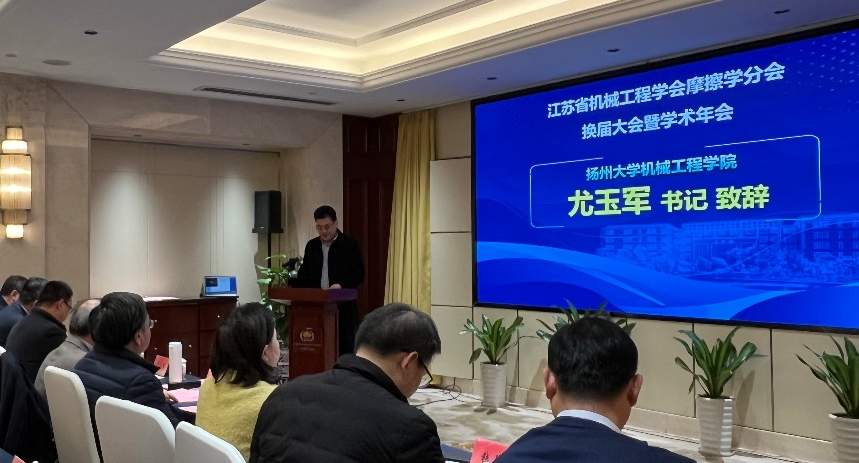 扬州大学机械工程学院书记尤玉军书记代表扬州大学对摩擦学分会换届大会和学术年会的举办表示热烈祝贺。他指出摩擦学是研究机械表面摩擦行为的学科,与服务国家“双碳”战略一脉相承,希望扬州大学机械工程团队与摩擦学分会一起坚持创新驱动发展,不断增强核心竞争力在摩擦学研究与工程应用领域更进一步。