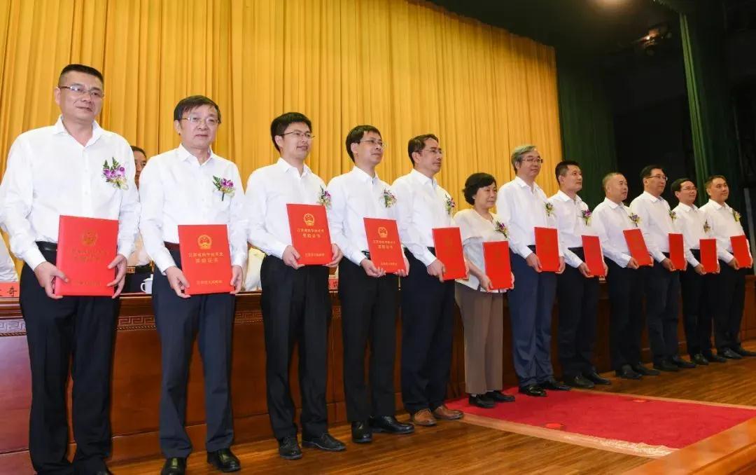 6月10日,江苏省委、省政府在宁举行全省科学技术奖励大会,深入学习贯彻习近平新时代中国特色社会主义思想,隆重表彰2019年度省科学技术奖获奖单位和个人,激励全省广大科技工作者攻坚克难、勇攀高峰,为推动高质量发展走在前列、建设“强富美高”新江苏提供坚实科技支撑。省委书记、省人大常委会主任娄勤俭出席大会并颁奖,省委副书记、省长吴政隆在会上讲话,省政协主席黄莉新出席,省委副书记任振鹤主持大会。