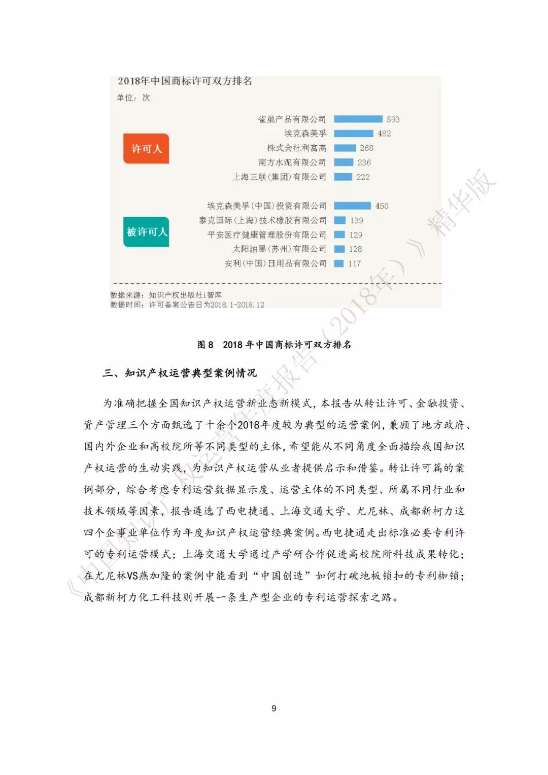 《中国知识产权运营年度报告(2018)》精华版发布 专利运营次数达25万余次