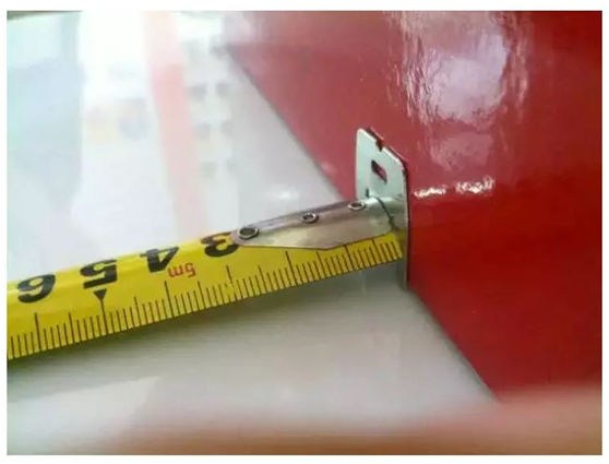 你需要将卷尺放置在同一平面,卷尺的外壳卡在最下方,然后读出卷尺上的长度,再加上卷尺本身的65mm的长度,你就得出了这段距离的准确长度。
