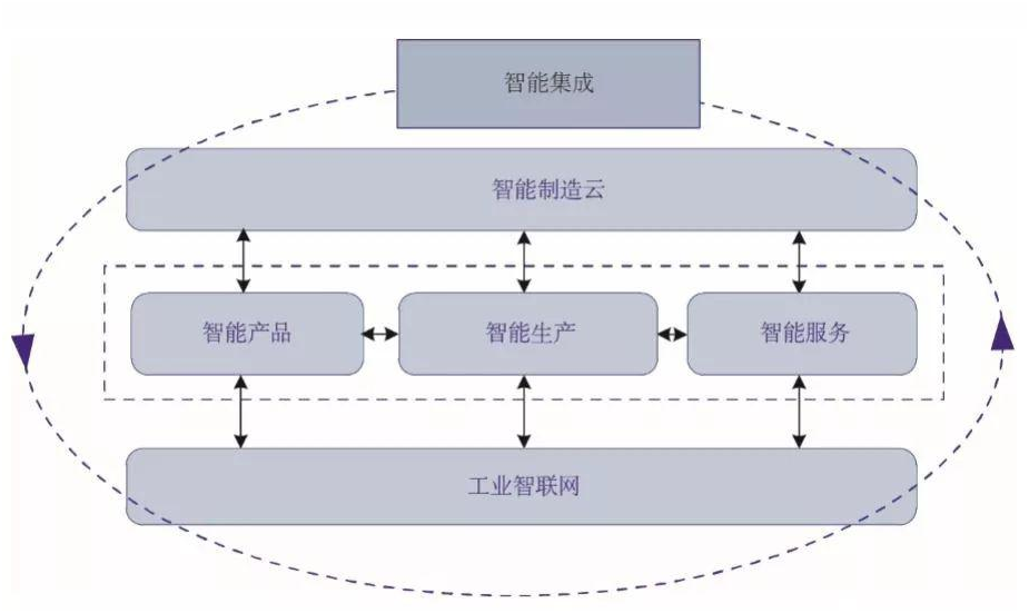 新一代智能制造是一个大系统,主要由智能产品、智能生产、智能服务三大功能系统以及智能制造云和工业智联网两大支撑系统集合而成。