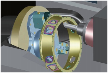 正如前面所介绍的那样:Tebis 软件已经排除了复合加工机床刀具与被加工零件碰撞的可能性。剩下就是刀具与机床附件的碰撞,例如刀盘上的刀具以及各个刀具运动过程中是否发生碰撞。经过模拟验证的 NC 数控程序也控制着机床附件,例如自动夹具、尾座或者跟刀架。
