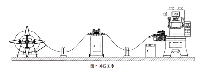 在金属零件加工的过程中,一旦出现需要同时加工的零件较多的情况下,只安装一台精密压力机,显然已经无法满足生产的需要。因此,应该使用伺服驱动搬送装置将短时间内无法冲压的金属零件运送到制定的位置,对送料装置潘松来的材料进行一一拾取,送到主机处进行逐一加工,不仅可以环节精密压力机所承受的压力,也可以提高金属零件加工的速度,直到金属零件加工完不,冲压的全部工序也就得以完成(见图2)。