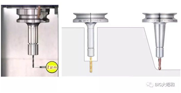 一般人认为普通的弹簧刀柄(例如ER刀柄)夹持精度低(4d处跳动0.01mm~0.02mm),所以在高精度的场合是不采用弹簧刀柄的。但这种美夹(MEGA)高精度弹簧刀柄在4d处跳动是达到0.003mm以内。困扰很多客户的刀柄干涉问题也可以一并解决。