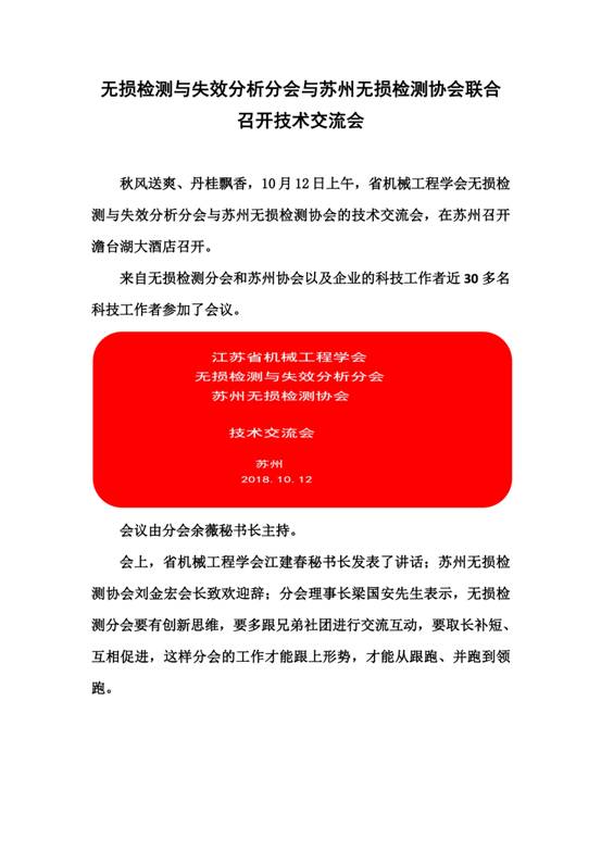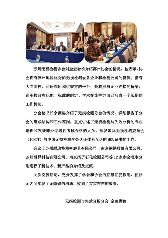 无损检测与失效分析分会与苏州无损检测协会联合召开技术交流会