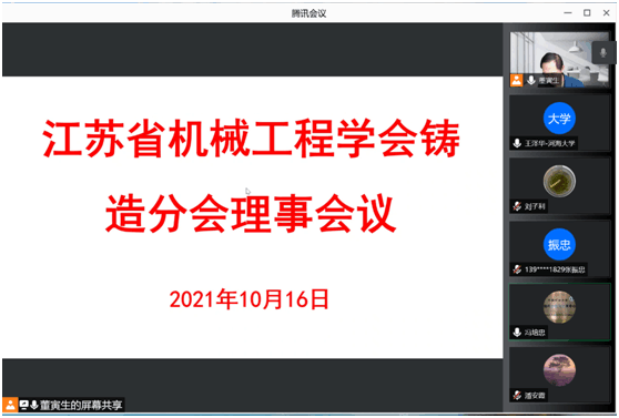 省机械工程学会铸造分会于2021年10月16日在线召开理事会议,二十余位理事参加了会议。会议由分会秘书长董寅生教授主持,铸造分会理事长王泽华教授做了工作报告。