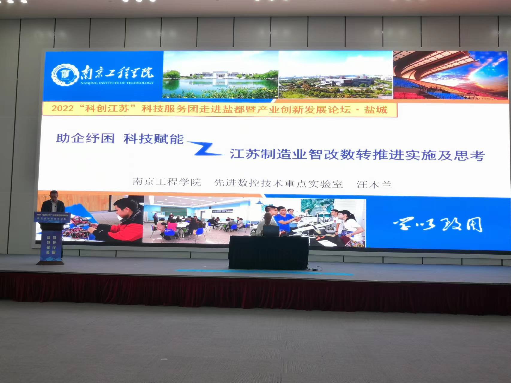 省机械工程学会秘书长徐爱民出席活动并在论坛上作了学会专题推介,并代表学会与盐都区科技镇长团签订了合作协议;学会常务理事、南京工程学院汪木兰教授应邀作了题为《江苏制造业智改数转推进实施及思考》的主题报告。