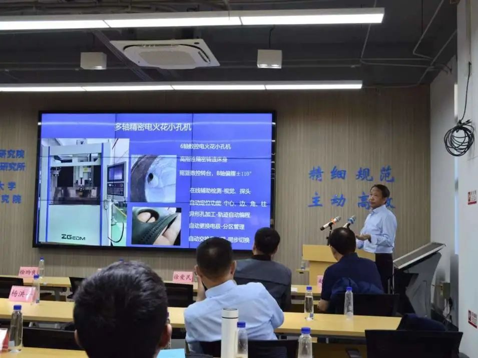 5月7日下午,学术交流会开始。与会代表们聆听学习了世界顶级的瑞士GF Machining Solutions 公司的先进制造技术及世界顶级的德国EMAG公司精密电解加工技术;了解了国内电火花加工机床生产的典型代表之一苏州汉奇数控设备有限公司的企业概况和产品特点;国内电火花高速穿孔机生产知名企业苏州中谷实业有限公司分享了企业的多轴数控电火花高速穿孔机在航空航天发动机涡轮叶片气膜冷却孔的加工应用情况;南京特种油厂也通过展板宣传的方式介绍了公司发展的历程和产品的特点。