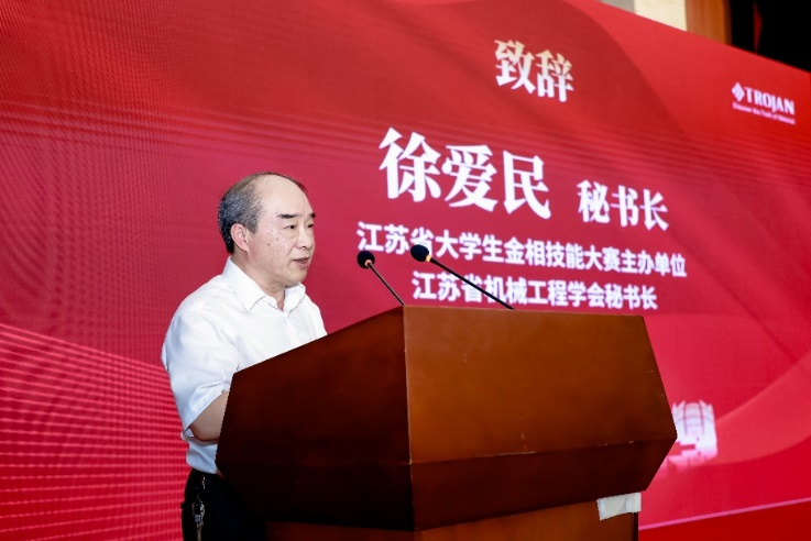 秘书长徐爱民对第二届江苏省大学生金相技能大赛暨第十二届全国大学生金相技能大赛复赛的顺利举办表示祝贺,对我校能够承办此次大赛表示感谢,对我校为大赛所作的精心、周密的准备工作表示肯定,并祝愿所有参赛选手取得优异成绩。