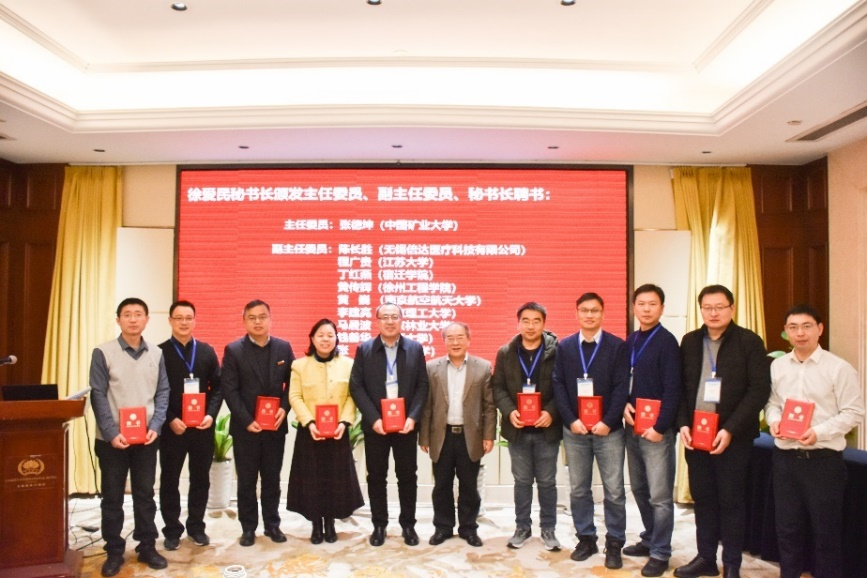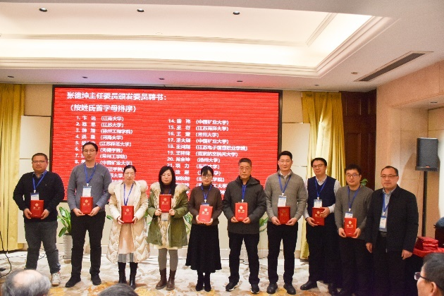 徐爱民秘书长宣读了摩擦学分会换届结果: 摩擦学分会主任委员为中国矿业大学张德坤教授,副主任委员9人,分别为无锡倍达医疗科技有限公司陈长胜总经理、江苏大学程广贵教授、宿迁学院丁红燕教授、徐州工程学院黄传辉教授、南京航空航天大学黄巍教授、南京理工大学李建亮教授、南京林业大学马晨波教授、江南大学钱善华教授、扬州大学张超教授。秘书长为中国矿业大学罗勇教授。常务委员为徐工工程机械研究院陈波等25人,委员为江南大学卞达等51人,徐爱民秘书长为主任委员、副主任委员、秘书长颁发聘书。
