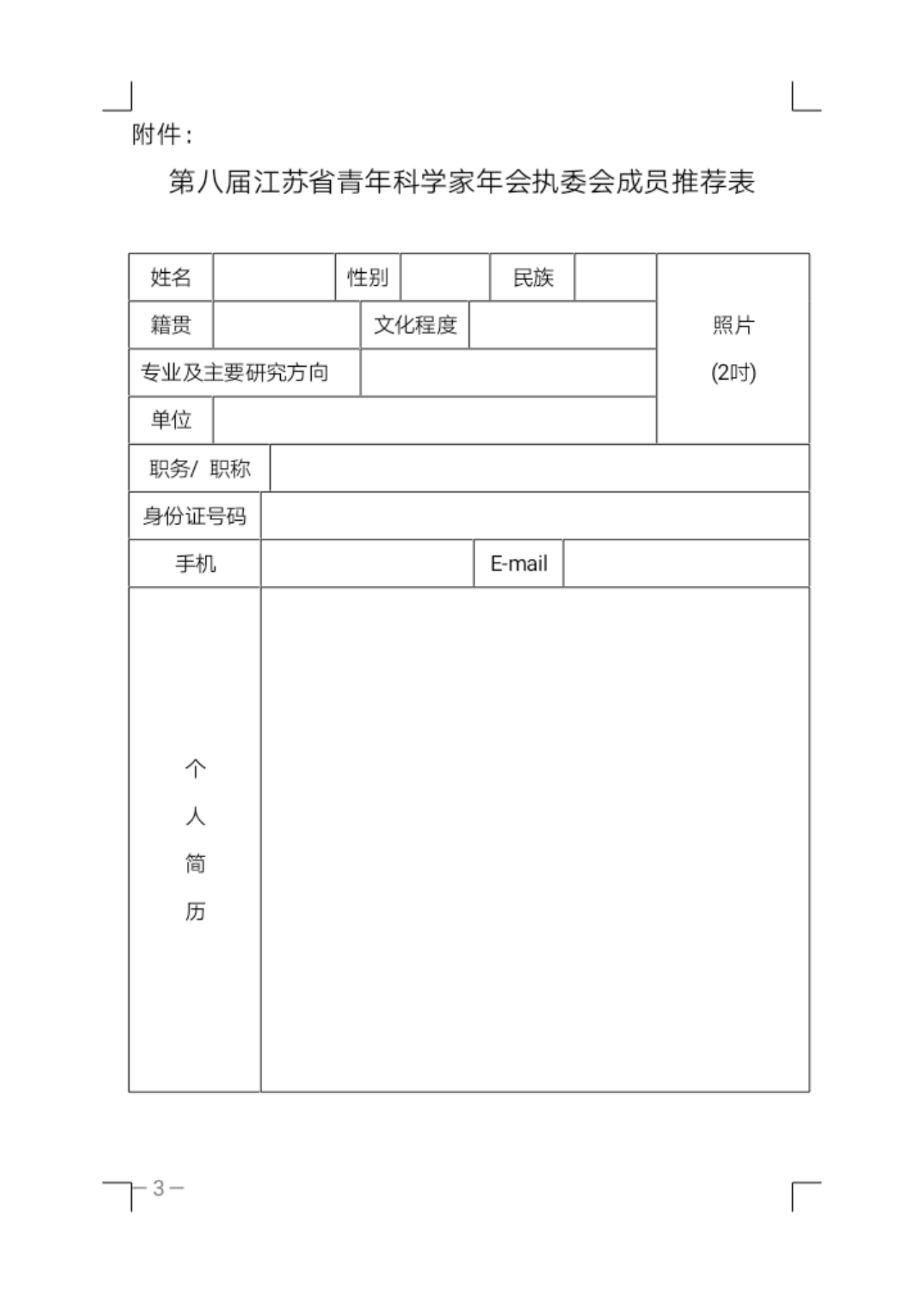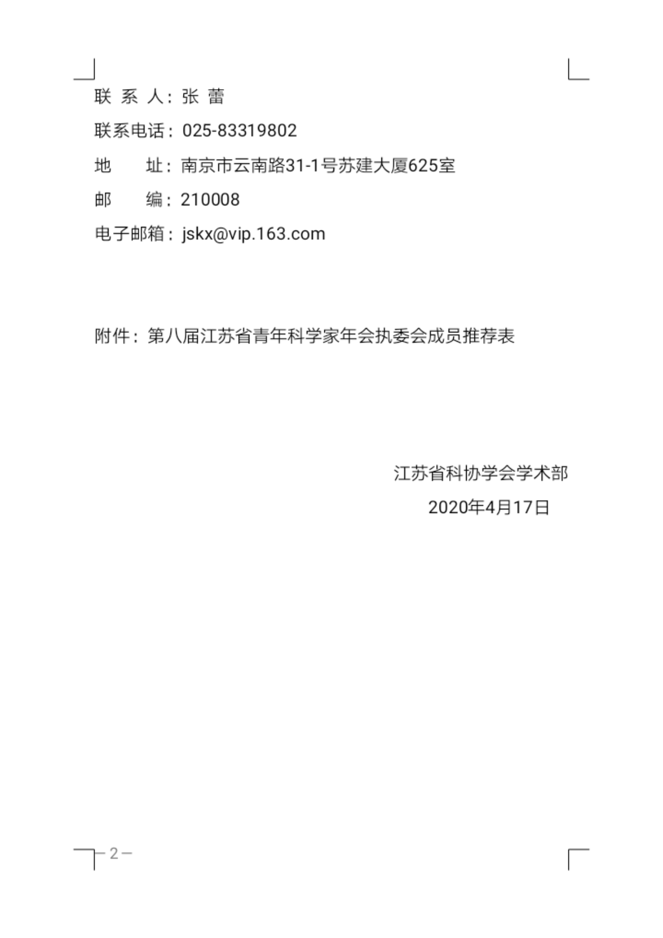 关于推荐第八届江苏省青年科学家年会执行委员会成员的通知
