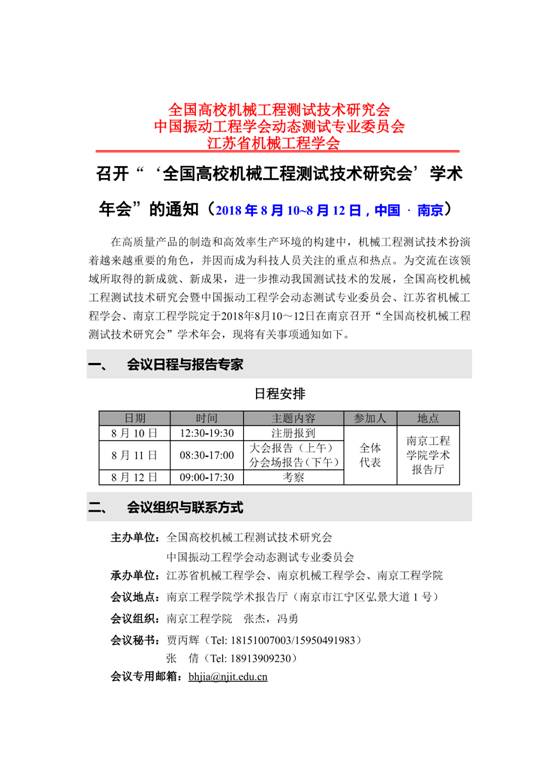 全国高校机械工程测试技术研究会 -- 学术年会通知