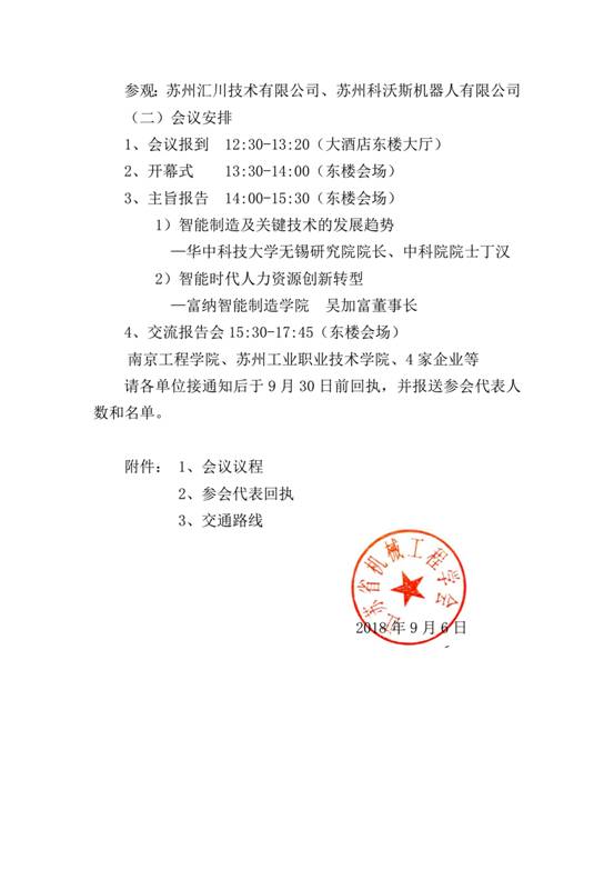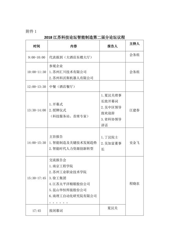 关于召开 2018 江苏科技论坛智能制造第二届分论坛的通知