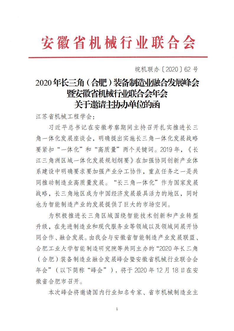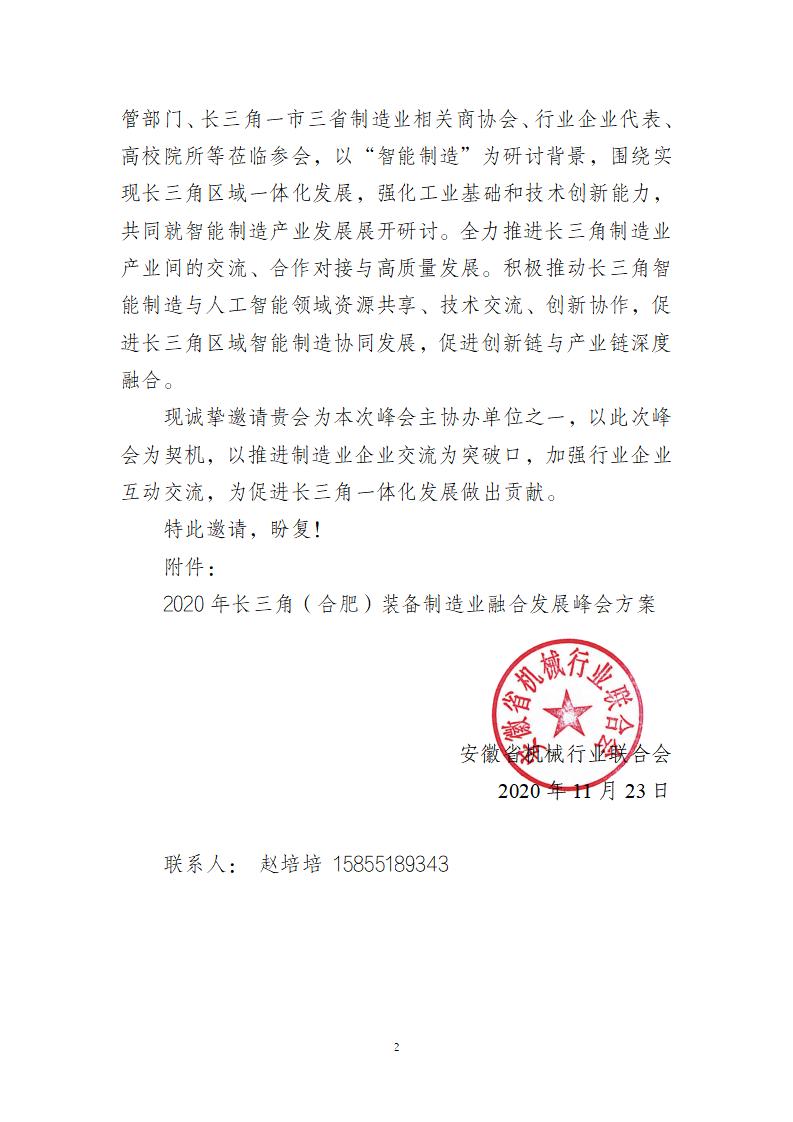 2020年长三角(合肥)装备制造业融合发展峰会邀请函