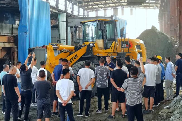 虽已是初秋,位于邯郸某化工厂堆料车间内气温仍高达32度,但比气温更高的是山推客户们的参会热情,体验会现场人头攒动,外观时尚、实力强劲的山推装载机遭到了客户的层层围观。